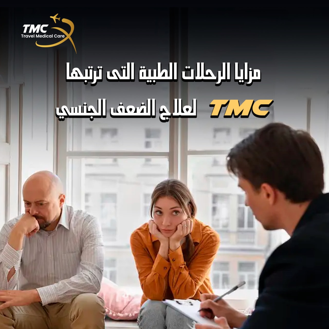 شركة tmc تقوم بتنظيم رحلات علاجية شاملة لعلاج حالات الضعف الجنسي، وترافق المريض من البداية وحتى انتهاء الرحلة بالشفاء والعلاج التام، إليك أهم مزايا اختيار tmc لتنظيم رحلة طبية لعلاج الضعف الجنسي: